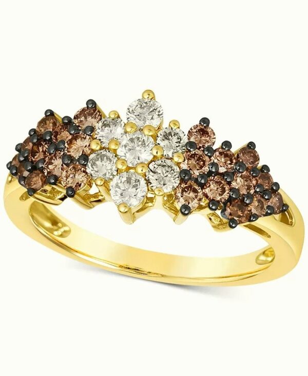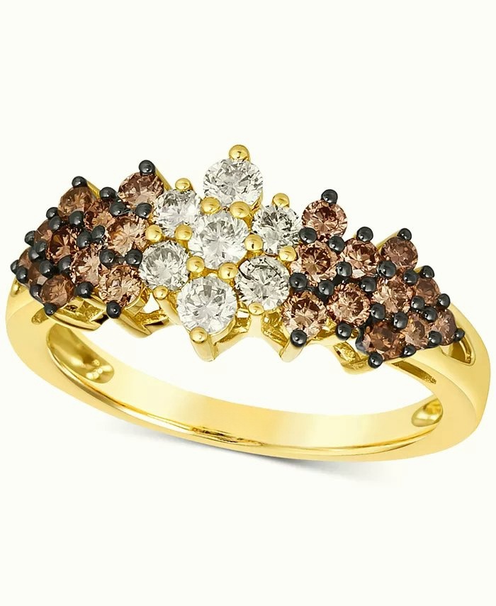Both sparkling and delicious, this stunning cluster ring is set with decadent Chocolate Ombr