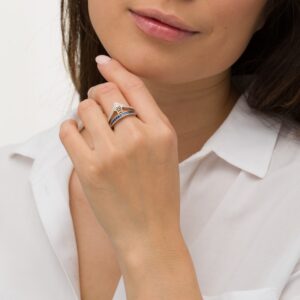 For an everlasting love, never-ending sparkle. Awash in round diamonds, this extraordinary engagement ring is crafted of 14K rose gold. The ring has a total diamond weight of 3/4 carat.