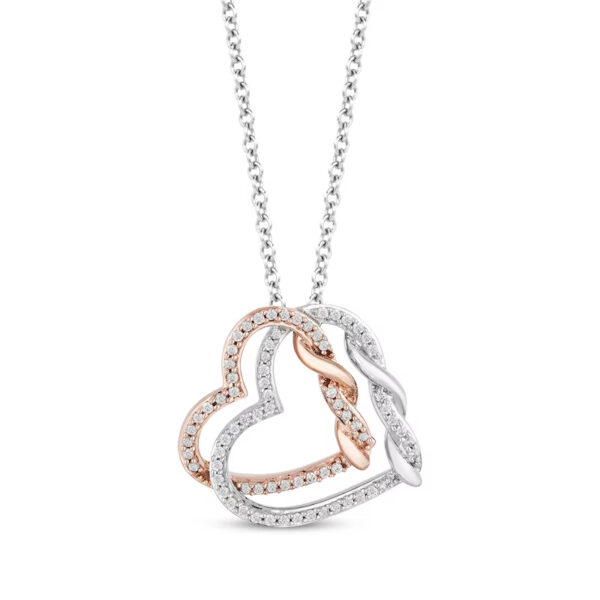 Hearts Necklace 1/4 ct tw 10K Rose Gold Sterling Silver 18”