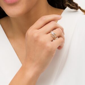 Crafted in 14K two-tone gold, this sizzling design showcases an 8.0 x 6.0mm oval-cut pale pink morganite in rose gold, encased in a rose gold and diamond oval frame and an open scalloped frame in white gold with diamonds. Sparkling princess-cut diamonds in a rose gold angled square frame flank the centerpiece, while white gold diamonds adorn the sides and the bridge beneath the bifurcated shanks. A small crown setting on the lower portion of the shank completes this magical choice. With 3/4 carats of diamonds and a brilliant polished sheen, this fairytale engagement ring is a bright symbol of your future together.